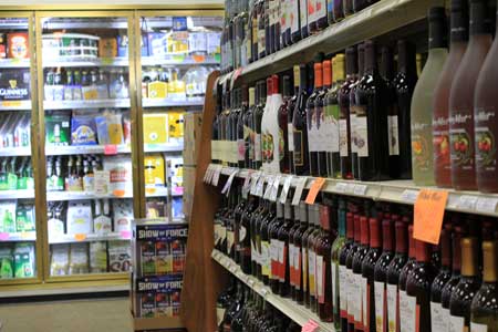 (b) A retail off-premises consumption permit or license if less than 50 percent of the gross receipts for the premises, excluding the sale of items subject to the motor fuels tax, is from the sale or service of alcoholic beverages; or